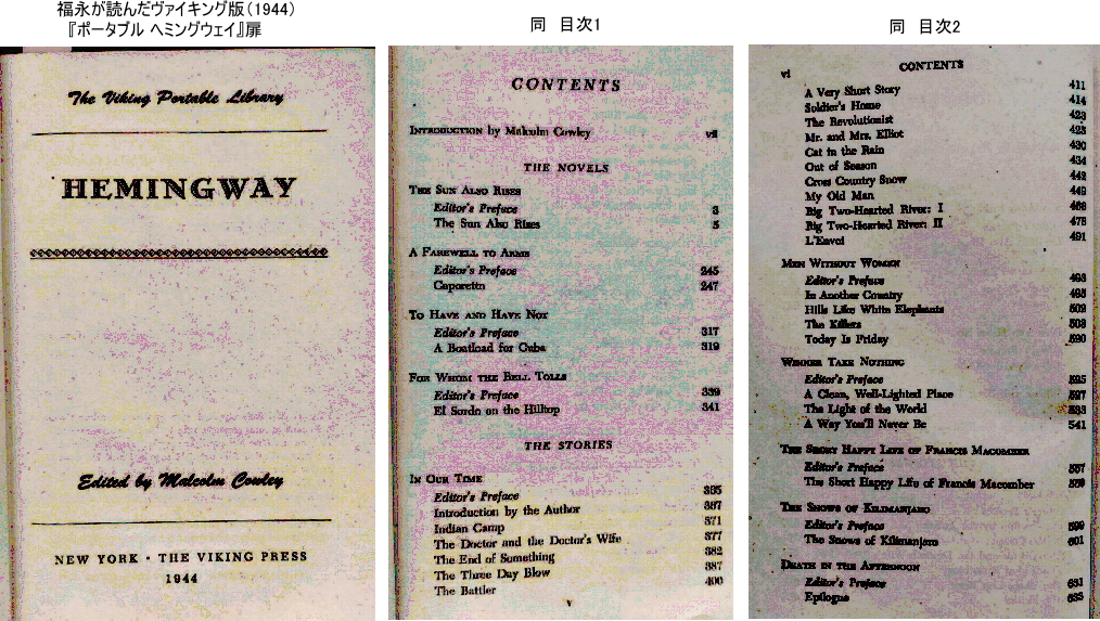 書影付き著作データに以下の資料を追加しました。 ◇「福永武彦詩集」写真版2部本 :掲載ページ New! 先日、懇意の古書店より連絡を受け、市場に福永武彦の面白い資料が出ていることを知りました。「福永武彦詩集」自筆ノオトの白黒コピーを大学ノートに1ページごとに張り付け、巻末には印刷した奥付が添附され、源高根宛の福永自筆識語が入っている2部本とのこと。存在は以前より知っていましたので入札を依頼したところ幸いに落札できました。 元となっている福永自筆の詩集というのは、『時の形見に』(白地社 2005.11)に写真版で紹介されているノートとはまた別の中判の大学ノートに記されたもので(1943年に清書されたもの)、収録詩篇も多少増えています。 奥付と福永識語により、このノートを作製したのは源高根氏であることがわかります。源氏はたえずこの写真版を参照し、岩波書店版『福永武彦詩集』校異への疑問を熱の籠った論文として纏めた際に参照したのもこの2部本です。 表紙、本文、奥付画像を掲載します。書影クリックで拡大画像にリンクします。 ![]() ◇「小説風土」(完全版)(決定版)(新潮文庫版):掲載ページ 書影クリックで拡大画像にリンクします。 ◇第214回例会 日時:2026年1月25日(日) 13時~15時 Zoo開催 内容:小品四種(「晩春記」「旅への誘ひ」「鴉のゐる風景」「夕焼雲」) 【例会での発言要旨・感想ほか】順不同(敬称略) Ki氏:小品四種 「晩春記」「旅への誘い」「鴉のいる風景」「夕焼雲」について 1.「新生日記」から窺える小品執筆経過と読書記録 会誌18号『「戦後日記」「新生日記」書名・作家名索引』により、日記中の関連記事を下表にまとめた。 福永は1947年11月に清瀬村国立東京療養所に入所 ![]() 2.小品四種へのヘミングウェイの影響について 1949年2月から4月にかけての小品三作執筆時の日記の読書記録で注目すべきは、執筆に先立って福永は、ヘミングウェイ作品を多数読んで感銘を受け、2月8日の日記には「習作としてヘミングウエイ的なshort-storyを二つばかり書いてみたい」と明記していることである。「ヘミングウエイ的な short-story を二つ」とは、『ロマネスク』に寄稿された「晩春記」と「鴉のいる風景」を指す可能性が高いと考えられる。いずれも簡潔で抑制の効いた文体と、内面を多く語らない人物造形という点で、ヘミングウェイ的な方法を強く意識した作品といえる。また「旅への誘い」も、この二作ほど顕著ではないが、簡潔な文体という点で同系統に位置づけられるだろう。 また1月21日の日記には、ヘミングウェイについて以下のような記述がある。